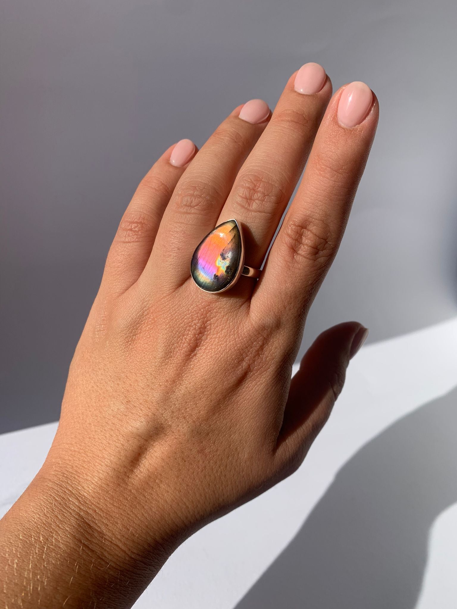 Anello regolabile in labradorite di argento 925 / Intuizione e trasformazione