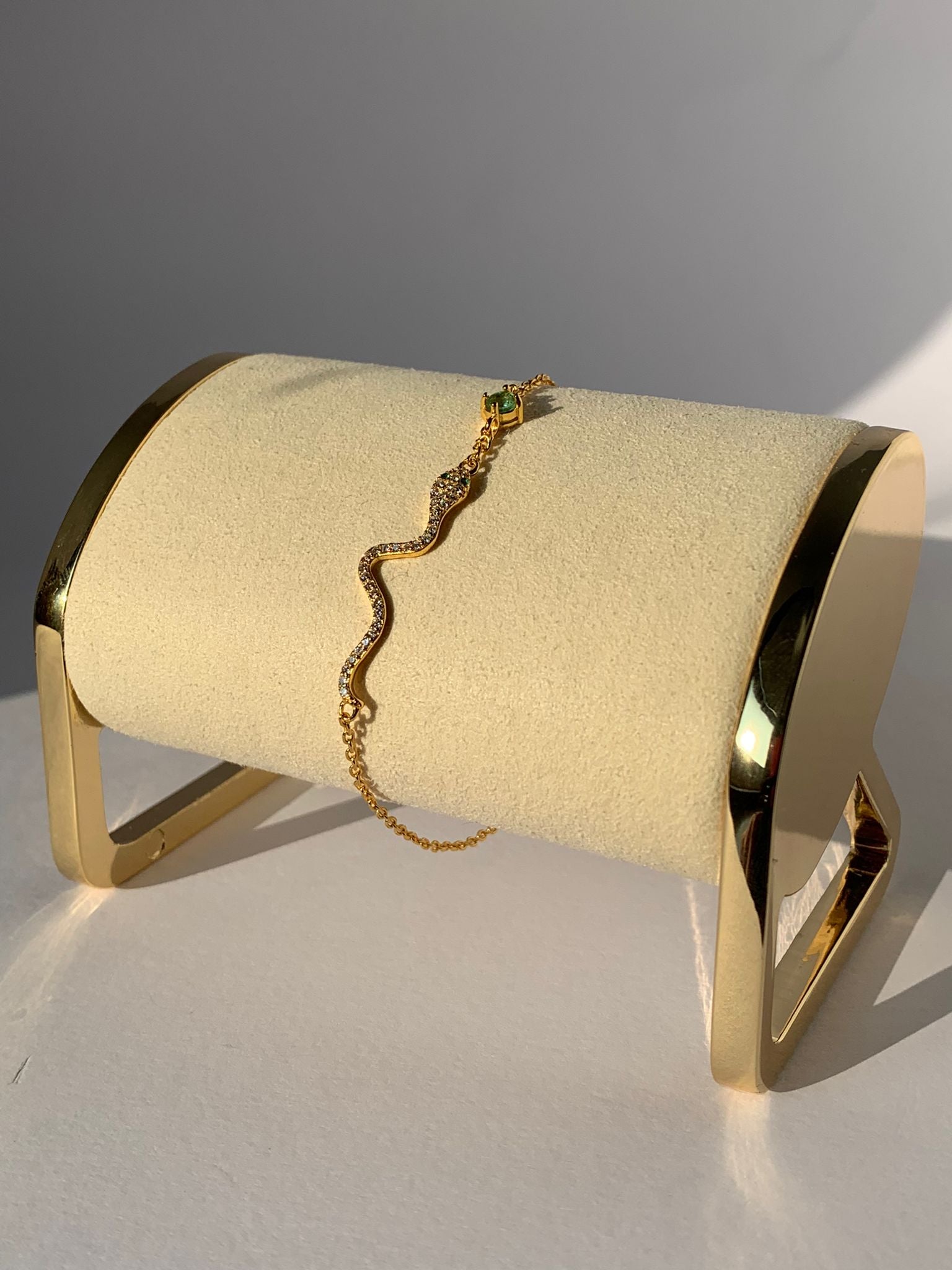 Bracciale in smeraldo con chiusura regolabile di argento 925 placcato oro / Abbondanza e manifestazione