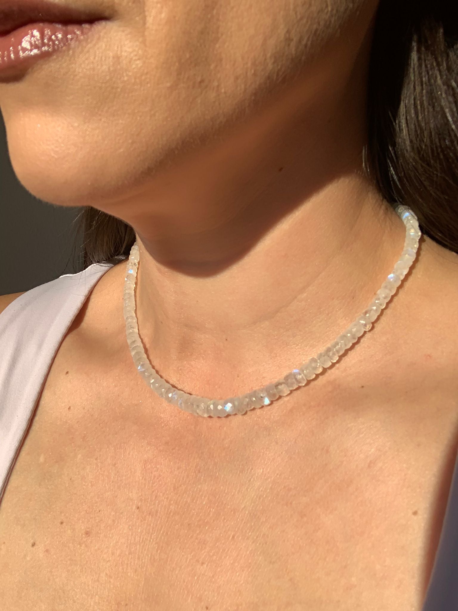 Girocollo in 118-125 carati di pietra di luna con chiusura regolabile di argento 925 / Femminilità e magnetismo