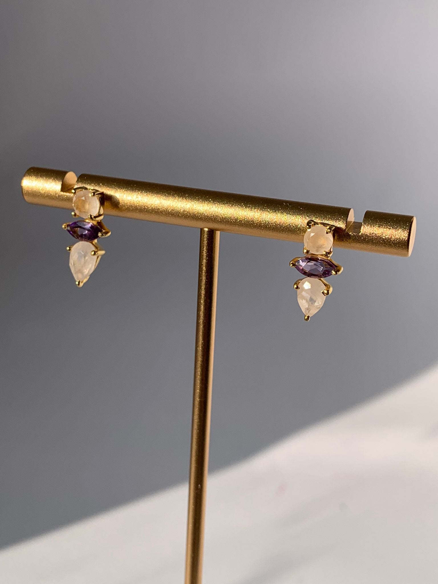 Orecchini in quarzo rosa ed ametista di argento 925 placcato in oro giallo 18 carati da 0,3 micron